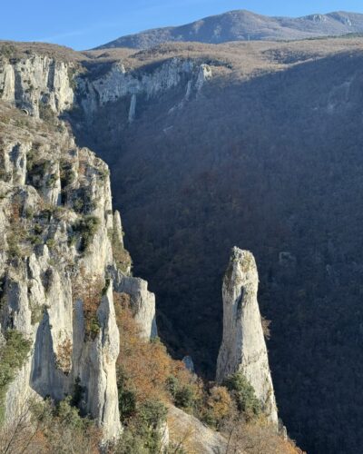 ela Draga is a breathtaking natural gem hidden in the heart of Učka Nature Park, far from the crowded tourist routes – perfect for a peaceful walk surrounded by rock formations. This unique canyon, famous for its towering limestone pillars and scenic viewpoints, is an ideal destination for families, nature lovers, or as a memorable stop during an Istria trip.